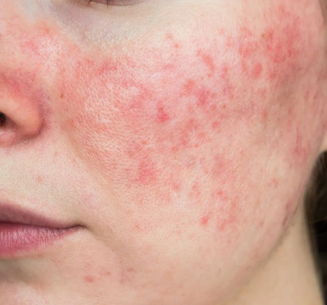 平常就臉頰偏紅,但最近連下巴、鼻頭都會出現小顆粒,碰到熱、喝酒或壓力大就紅更嚴重,感覺超明顯😣