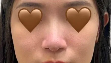 鼻頭偏肉、正面看山根幾乎是平的,還有一點寬寬的感覺